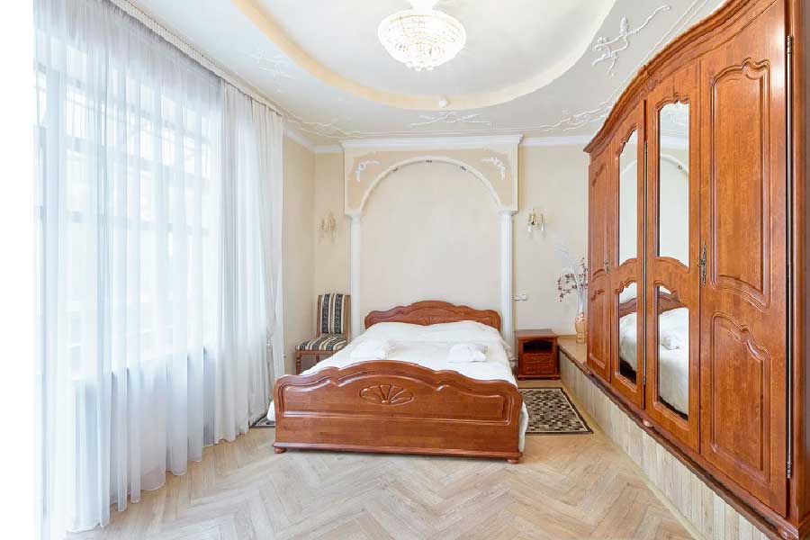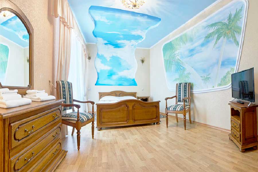 Площадь номера 200 кв.м. Предусмотрены телевизор, холодильник и набор посуды.